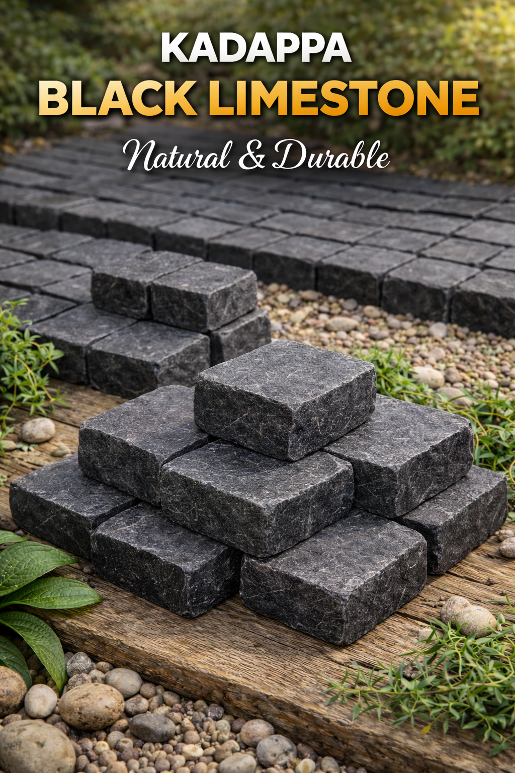 Kadappa Black Limestone Cobbles are known for their high density, durability, and smooth dark finish. Ideal for driveways, pathways, and heavy-traffic areas, they offer excellent strength, weather resistance, and long-lasting performance for residential and commercial projects.