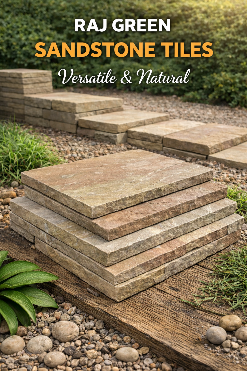 Raj Green Sandstone Tiles feature natural green and earthy tones with a textured surface. Durable and weather-resistant, they are ideal for patios, garden pathways, and outdoor landscaping, offering a timeless and elegant appearance for residential and commercial projects.