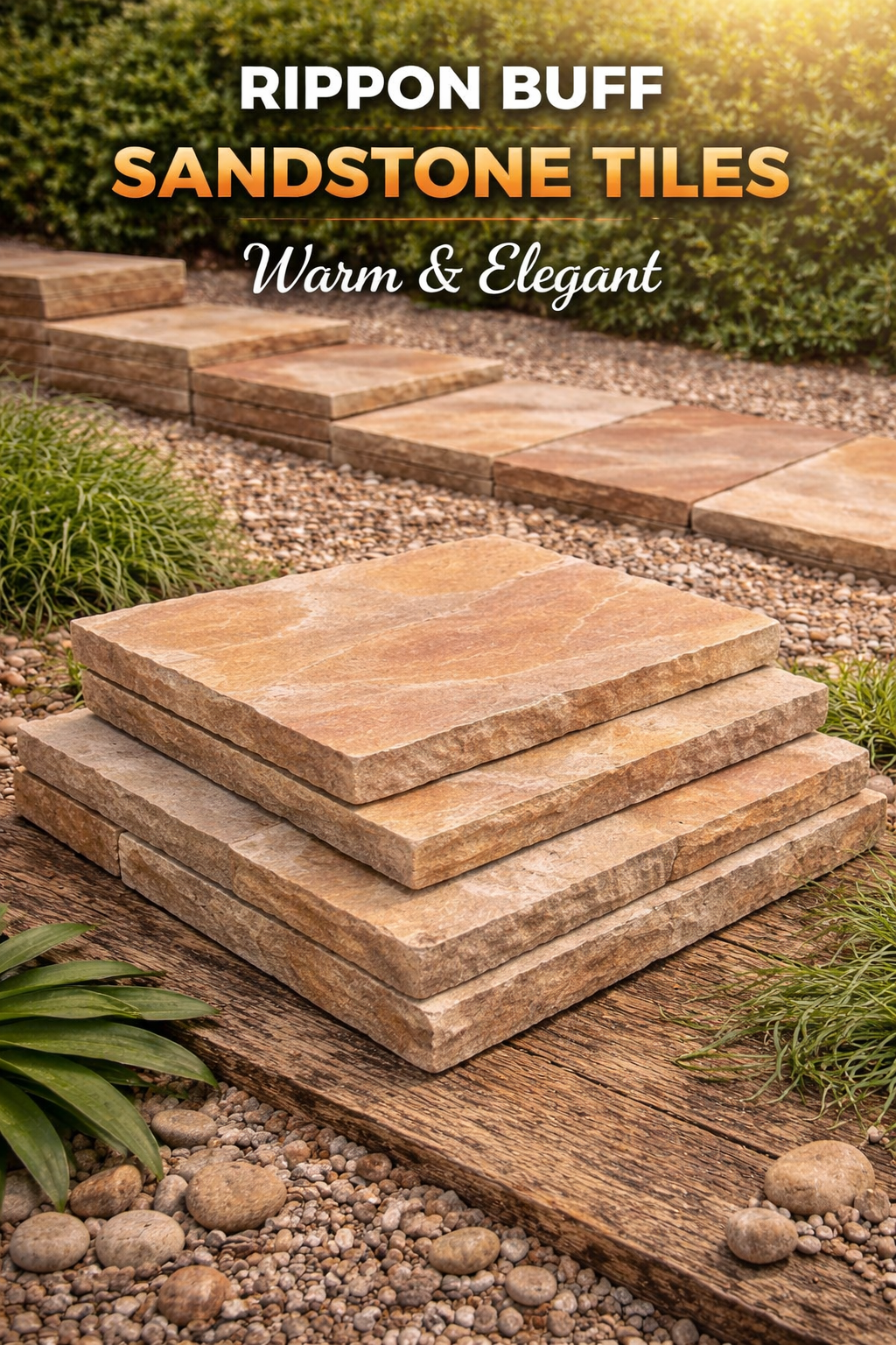 Rippon Buff Sandstone Tiles showcase a soft buff and light brown blend with natural texture. Durable and weather-resistant, they are perfect for patios, pathways, and garden landscaping, providing a warm, elegant look for residential and commercial outdoor spaces.